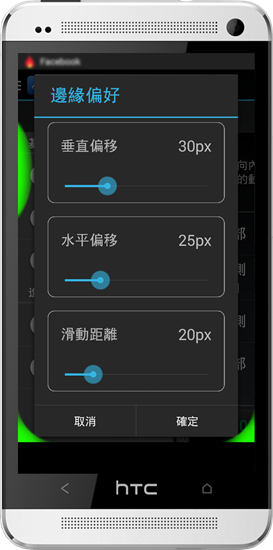8. 垂直偏移可以調整上下位置滑動距離是手勢要滑多長