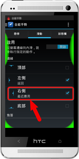 2. 在左側啟用手勢,功能選為 "返回" (因為自己習慣用左手)